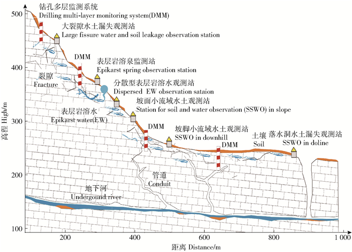 图 3 广西平果国家野外站岩溶关键带水土漏失观测研究剖面 Fig. 3 Monitoring section for soil and water leakage in karst critical zone of the Pingguo national field station, Guangxi |