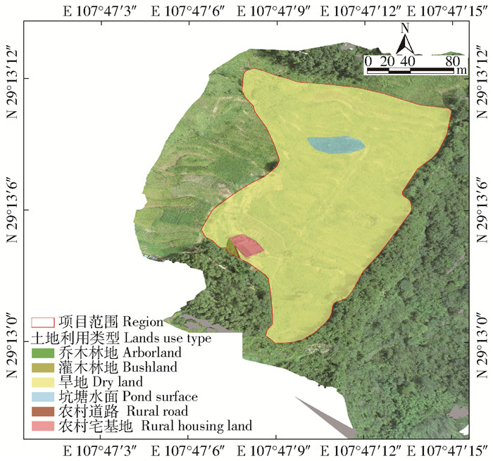 图 1 2021年山坪塘土地利用类型 Fig. 1 Lands use types of check dam in 2021 |