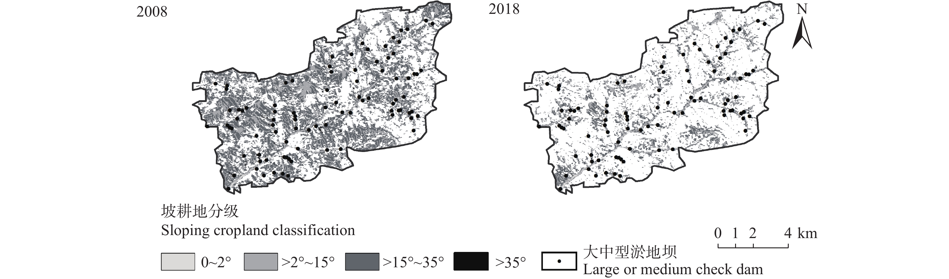 图 9 典型流域2008—2018年间坡耕地变化 Fig. 9 Changes of slope cropland in the typical catchment between 2008 and 2018 |