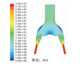 | 图 2 钻井液速度分布云图 Fig.2 Drilling fluid velocity distribution |