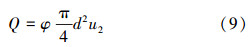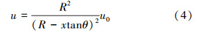 将喷嘴收缩段入口处的流量Q=πR2u0及式(4)代入式(5)可得[9]: