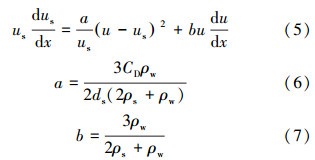 式中,us为粒子的速度,m/s;ds为粒子的直径,m;ρs和ρw分别为粒子和钻井液的密度,g/cm3;CD为摩擦阻力系数;a、b为系数。