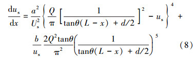 x为圆锥段某处距入口的距离,m;R为圆锥段入口半径,m;θ为圆锥段的收缩半角。