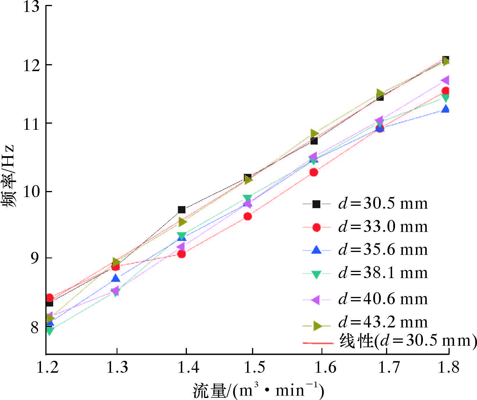 | 流量/(m3·min-1) | 频率/Hz | |||||