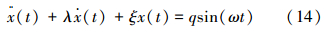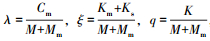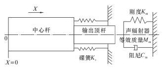 中心杆和输出顶杆初始位置为X=0,其沿X轴线位移为x(t),最右边是与驱动器连接的声辐射器,其等效质量为Mm,等效刚度为Km,等效阻尼为Cm,中心杆质量为M,碟簧弹性系数为Ks,忽略中心杆在运动过程中受到的阻力,则有: