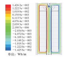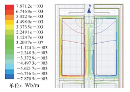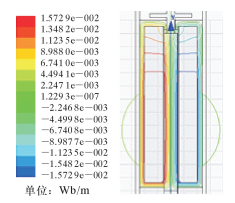 | 图 2 通电线圈在中心杆处的磁力线 Fig.2 The magnetic field lines of the energized coil at the center rod |