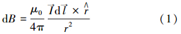 为电流元到所求磁感应强度点的距离矢量;H为磁场强度矢量;μ为磁导率。
