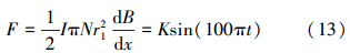 图 8和图 10线圈在交流电作用下,各个时间点中心杆瞬时磁感应强度不同,但其值随时间正弦变化,即Bo=Bomaxsin(100πt)。