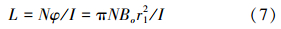 当螺线管中心存在中心杆(铁芯)时,相当于螺线管内还存在一个通电线圈绕组,而该绕组产生的磁场强度BO2即为附加磁场强度,其值为: