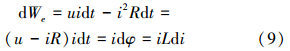 在时间dt内,由电源输入线圈的电能为uidt,消耗于电阻上的电能为i2Rdt,这部分能量转化为热能。因此在dt内输入磁场的净电能为: