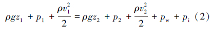式中:z1为闸板前部高程,m;p1为闸板前部压力,Pa;v1为闸板前部钻井液流速,m/s;z2为闸板后部高程,m;p2为闸板后部压力,Pa;v2为闸板后部钻井液流速,m/s;g=9.8 m/s2,为重力加速度;pw为防喷器闸孔节流产生的局部压力损失,或称井口回压,Pa;pi为流体惯性压力,Pa。