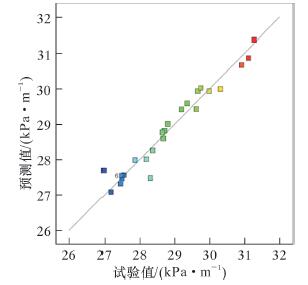 | 图 7 试验值与预测值对比 Fig. 7 Comparison of experimental data and predicted values |