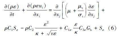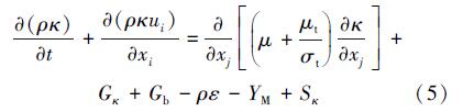 在Realizable κ-ε湍流模型中,关于κ和ε的输送方程如下: