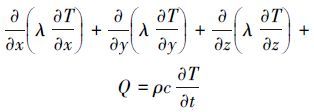 (1) 式中:ρ为预置层的密度;c为预置层的热容量;λ为预置层的热传导率;T为温度分布的函数;Q为相变潜热;t为时间。