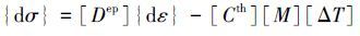 模拟计算弹塑性力学行为时,考虑温度对应力-应变本构关系的影响,其热弹塑性本构关系如下[9]