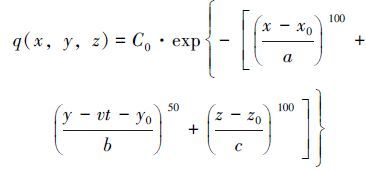 宽带激光熔覆热源比较特殊,数值模拟中对3D高斯热源模型进行修正而得到热源模型[11],表示为: