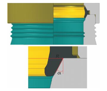 工作状态下,Ⅰ型主密封面(见图 3)与VGX钢圈密封面紧密接触,形成牢固可靠的锥形环状密封带。关键设计要素包括半径R和倾角α。