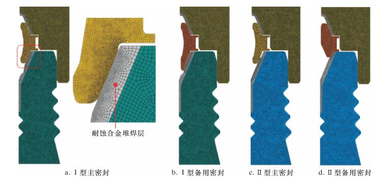 3 有限元分析结合有限元计算,分析对比2种密封型面在不用预紧力及内压下各自的密封性能及特点。