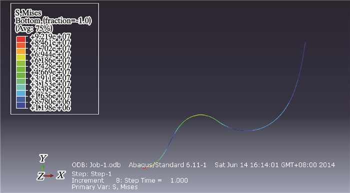 | 图 3 无水流情况下水下软管初始模型应力图 Fig.3 Stress distribution of initial model of submarine hose without current |
