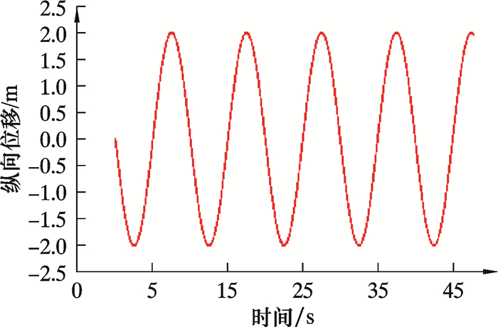 在ABAQUS中对水下软管顶部连接点施加振幅2 m、周期10 s的位移约束,如图 7所示。