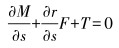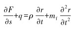 在三维笛卡尔坐标系下,径向量定义为r(s,t)。假定管段不可伸长,根据单位管段的力和力矩平衡,可以得到考虑内部流体作用的水下软管运动方程: