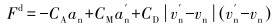 式中:CA为单位长度质量系数,CM为单位长度惯性力系数,CD为单位长度拖曳力系数;vn和an分别为法向速度和加速度分量,m/s、m/s2;v′n和a′n分别为垂直于中心线的法向速度和加速度,m/s、m/s2。