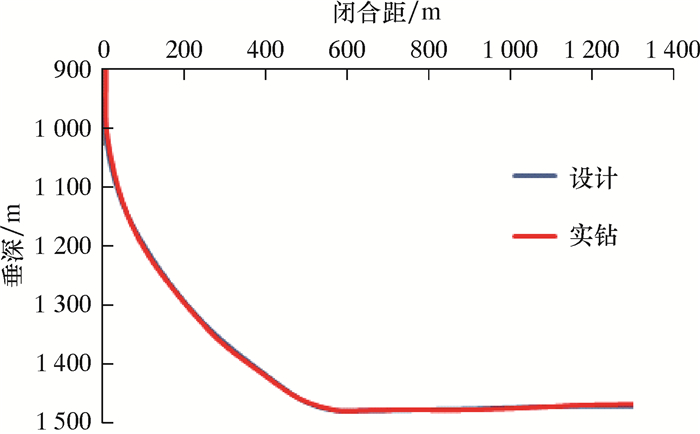 | 图 4 设计与实钻垂直剖面图对比 Fig.4 Comparison of vertical section of the designed well path and actual well trajectory |