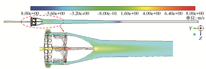 | 图 6 水力旋流管中心截面上水相速度云图 Fig.6 Water phase velocity distribution on the center section of hydrocyclone pipe |
