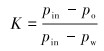式中:pin为入口压力,kPa;po为溢流口压力,kPa;pw为水出口压力,kPa。