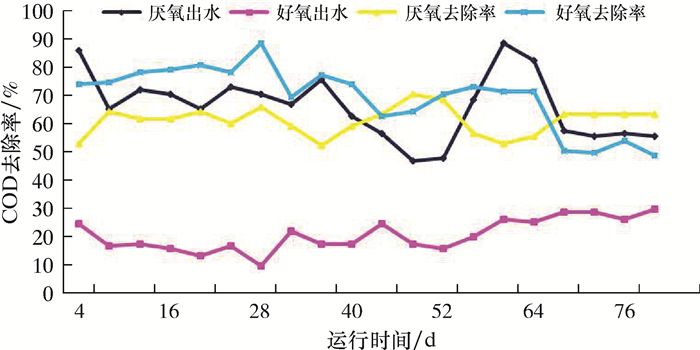 | 图 4 UASB+SBR联合处理对COD去除效果 Fig.4 Removal rate of COD under the combined treatment of UASB+SBR |