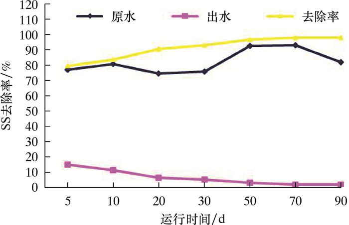 | 图 5 UASB+SBR联合处理对SS的去除效果图 Fig.5 Removal rate of SS under the combined treatment of UASB+SBR |