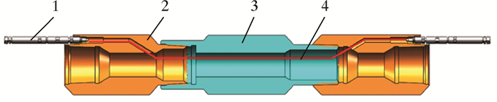 1—电缆接头;2—穿越接头;3—封隔器;4—电缆。 图 4 电缆穿越示意图 Fig.4 Schematic diagram of though-cable packer |