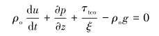 根据动量定理,作用于控制体流动方向(即z增加方向)的合力等于控制体动量变化速率,即: