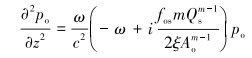 假设波速c不变,由于摩阻的影响,虽然压力波沿井筒传播随着距离而衰减,但在井筒任意特定位置上压力波的波幅将不会发生改变,所以对于施加于井口正弦型的脉动压力而言,方程(35)的解必定是: