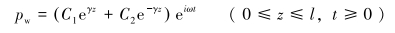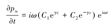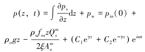 同样地,将井筒中环空压力p(z, t)看成稳定压力和脉动压力分量之和,即:
