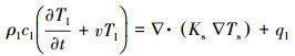 式中:vx、vy、vz分别表示3个方向的媒介传导速率;kx、ky、kz分别表示3个方向的热传导率,W/(m·K);ρ为材料密度,kg/m3;c为材料比热容,J/(kg·℃);q为单位体积中内热源的生成热,W/m3。