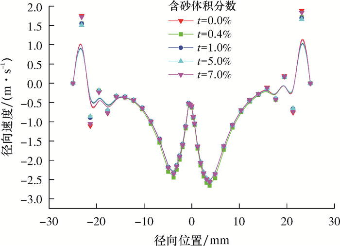 | 图 3 不同含砂体积分数时S2截面径向速度分布 Fig.3 Radial velocity distribution of S2 cross section under different sand volume fractions |