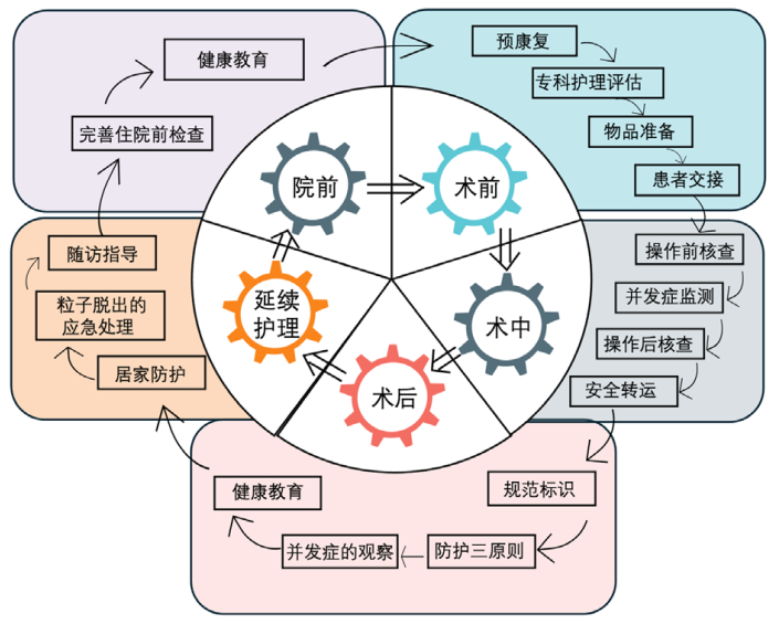 | 图 1 经皮放射性粒子植入护理全程管理流程图 Fig.1 Flow chart of the whole-process management of nursing care for percutaneous radioactive seed implantation |