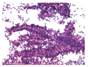 | 注 纤维血管丰富,细胞围绕纤维血管形成细长乳头结构 图 2 1例胰腺神经内分泌肿瘤误诊为实性假乳头状瘤的细胞学涂片(HE× 200) Fig.2 Cytological smear of a pancreatic neuroendocrine tumors misdiagnosed as the pancreatic solid pseudopapilloma |