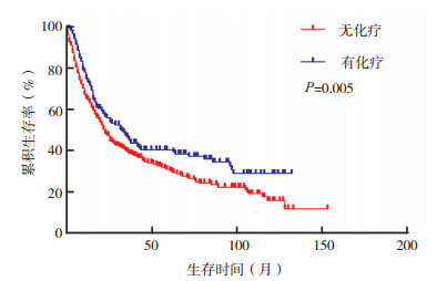 采用SPSS 22.0软件进行数据分析。KaplanMeier法绘制生存曲线, Log-rank检验用于验证与生存预后相关的因素。χ2检验或Fisher精确检验用于分类变量组间比较。Z检验用于5年生存率分析。采用逐步Cox回归模型进行单因素及多因素分析。以P < 0.05为差异具有统计学意义。