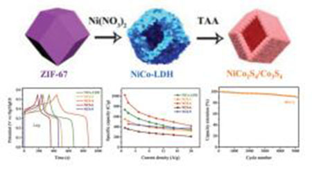 An effective controllable hydrothermal strategy was carried out for constructing a rational design of heterogeneous and low-crystalline architecture of MOF-derived bimetallic sulfides nanocomposite with abundant hetero-interfaces, which exhibits superior electrochemical performance due to strong interfacial electron transfer properties and numerous active sites.