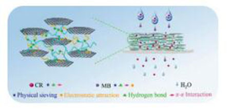 In this study, the high permeance GO-based membrane deriving from a crosslinked graphene oxide (GO), polydopamine (PDA), and 3-aminopropytriethoxysilane (APTES) was designed. The modified GO-based membrane exhibited high flux, high rejections to dyes, and superior reusable performances.