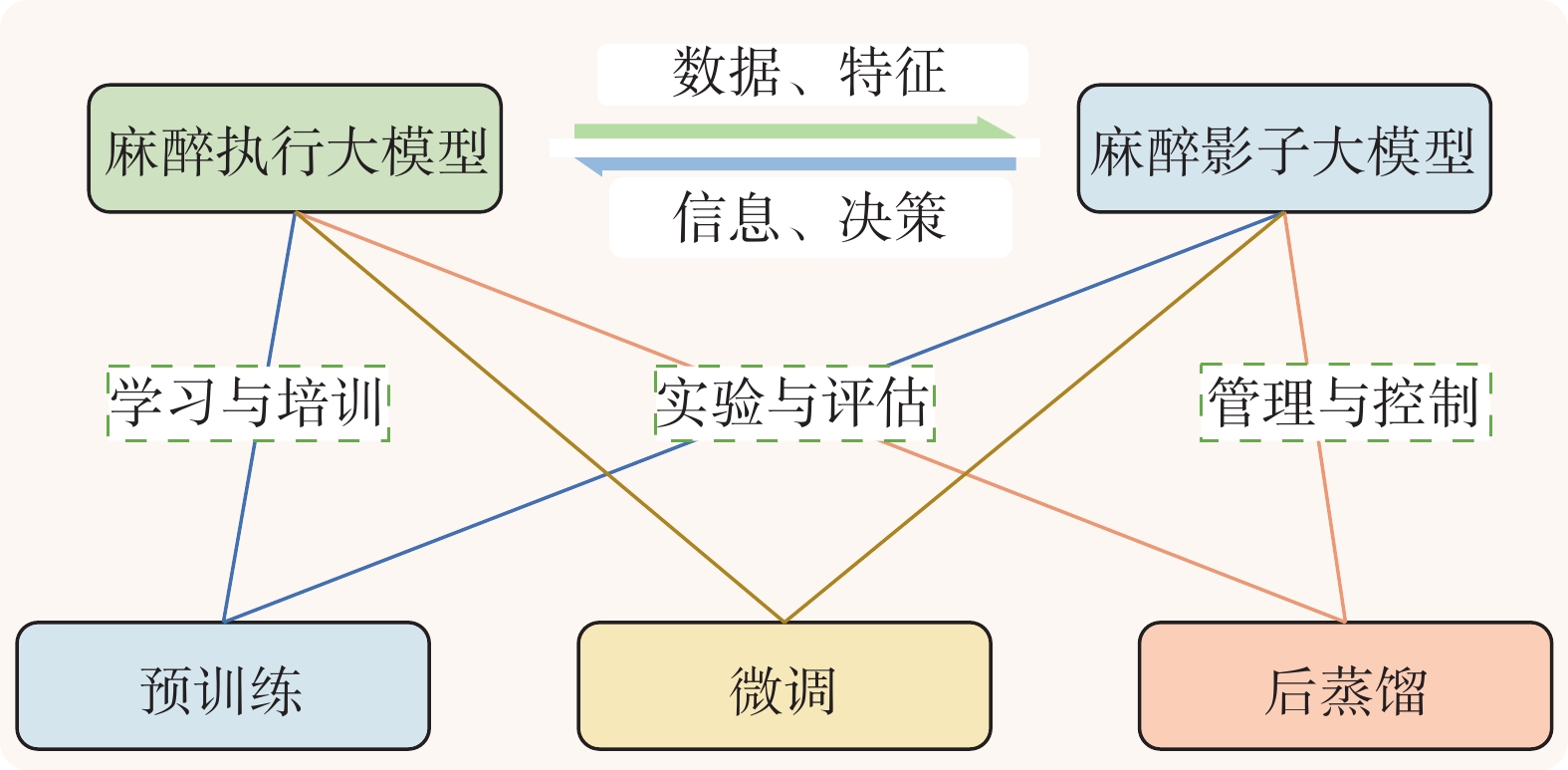 3)平行大模型与验证机制的系统优化:麻醉执行大模型经微调和后蒸馏优化低延迟,麻醉影子大模型通过云端预训练、微调和在线学习监控并优化协作策略。
