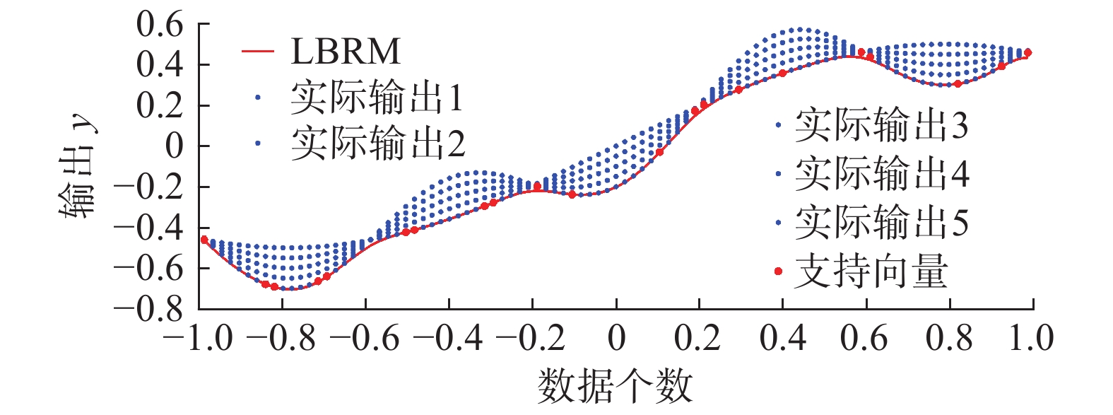 可知,应用提出方法所建立的最优LBRM仅仅需要9个支持向量,即从这201个数据中,建立LBRM只用到了其中的9个数据,表明稀疏特性较好,对应的指标