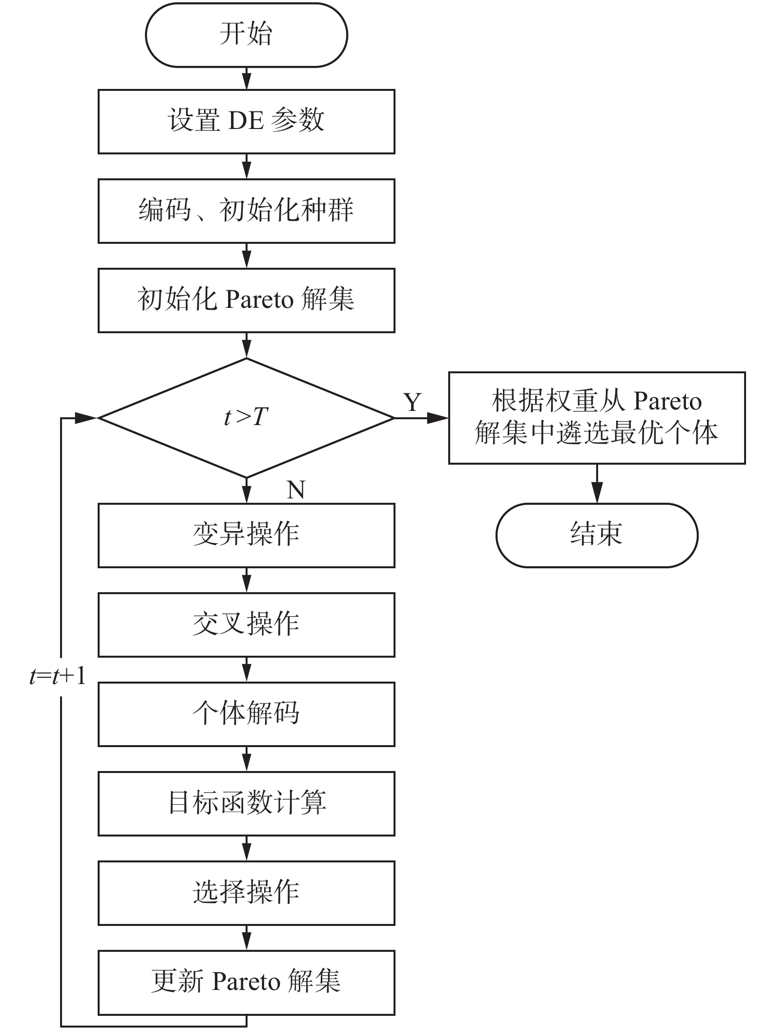| 图 3 多目标自适应差分进化算法流程 Fig. 3 Flowchart of MOADEA | |