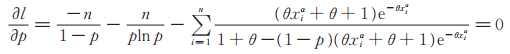 3 参数的极大似然估计设X1,X2,⋯,Xn是来自PLL(p,θ,α)分布的简单随机样本,样本观测值为x1,x2,⋯,xn,记xobs={ x1,x2,⋯,xn },则由(5)式知对数似然函数为