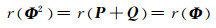 2) r(Φ)是一个常数且r(Φ) =r(P + Q), 从而Φ可逆当且仅当P + Q可逆;
