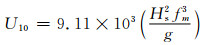 式中, Hs是有效浪高(m),U10是离海面10 m处的风速(m·s-1),fm是海浪的峰值频率(Hz),g是重力加速度(m·s-2).利用所得海浪谱求得浪高、将浪高和谱峰频率代入式中求得风速.