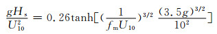 2.2.1 JONSWAP(joint north sea wave project)关系式法1968年,由英、美、德等国家的有关机构进行了联合北海波浪计划,在德国舒尔拖岛附近采用5种观测波浪仪器,从测得的2 500个风浪谱中得到JONSWAP谱[9]和关于浪高、浪周期及风速的经验关系式,即JONSWAP关系式:
