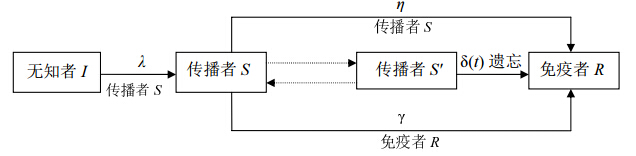 | 图 1 遗忘率变化的谣言传播过程结构 |